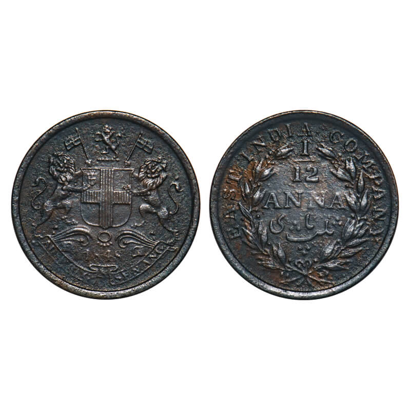 Victoria Queen, Copper, 1/12 Anna, 1848, Calcutta Mint, Wreath with 23 Berries (13L + 10R), Rev aligned. F. Prid 163. GK 237. Extremely Fine+. Scarce.