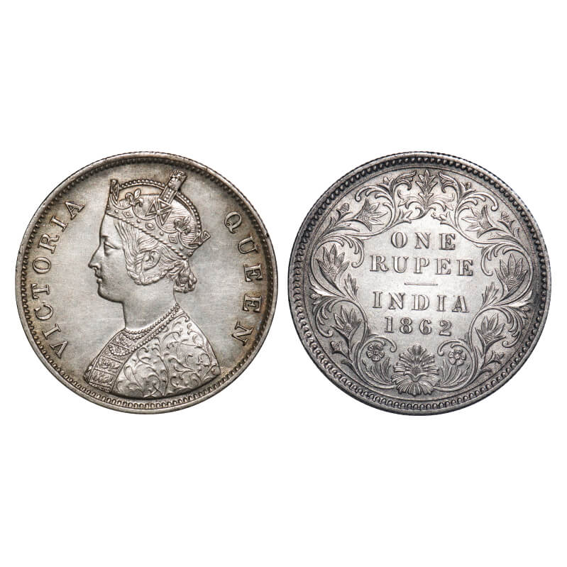 Victoria Queen, Silver, Rupee, 1862, (2 coins), Calcutta Mint, inclined 1, 1) A/II(i), With initial...