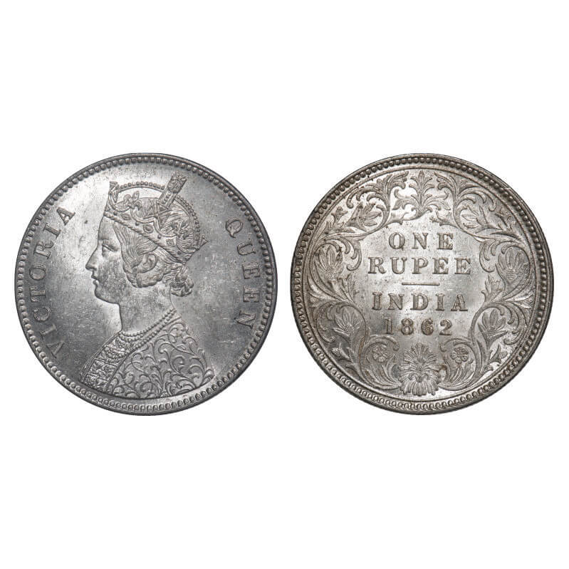 Victoria Queen, Silver, Rupee, 1862, Calcutta Mint, A/I, With initial 'J', Flat 1. F. Prid 66. GK 255. Uncirculated. Very Scarce.