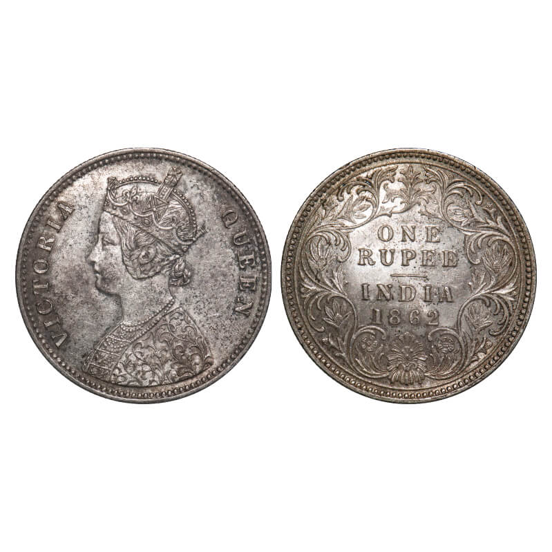 Victoria Queen, Silver, Rupee, 1862, Calcutta Mint, A/1, With initial 'J', Flat 1. F. Prid 66. GK 255. Extremely Fine+. Scarce.