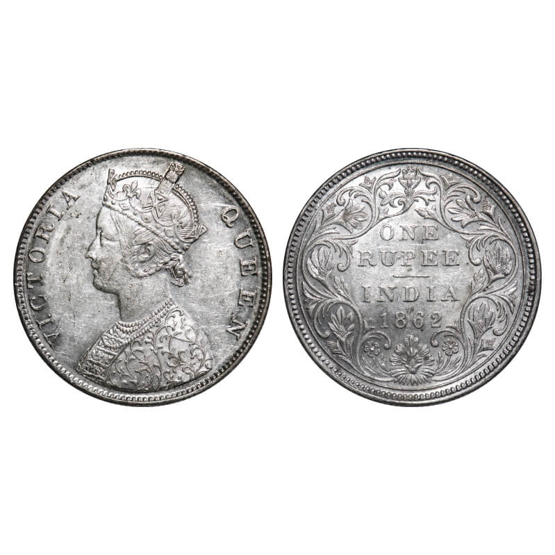 Victoria Queen, Silver, Rupee, 1862, Madras Mint, B1/II, w/o enclosed frame effect, Inclined 1. F. ...