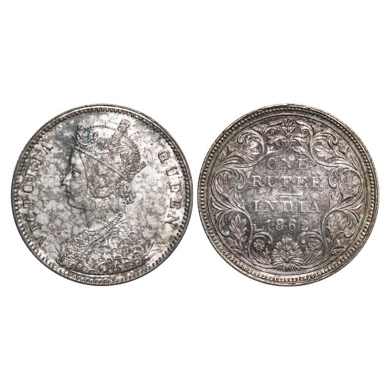 Victoria Queen, Silver, Rupee, (2 coins), 1862, Bombay Mint, Inclined 1, 1) A/II/0/4, w/o initial '...