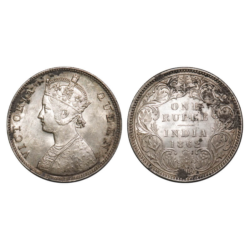 Victoria Queen, Silver, Rupee, 1862, Bombay Mint, B/I/0/4, Flat 1. F. Prid 80. GK 309. Extremely Fine+. Very Scarce.