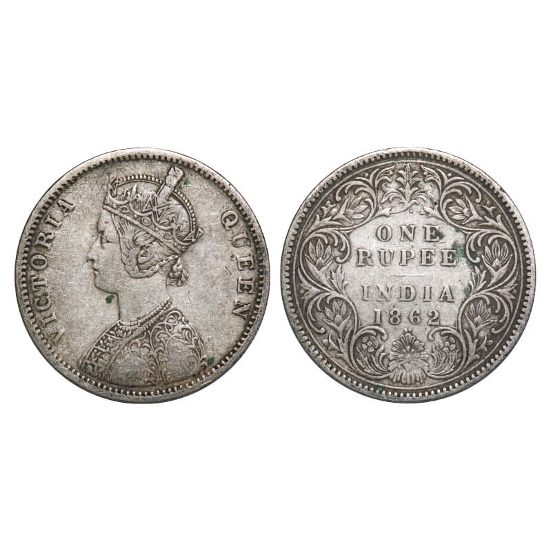 Victoria Queen, Silver, Rupee, 1862, Bombay Mint, A/II/1/2, With initial 'J', Inclined 1. F. Prid 1...