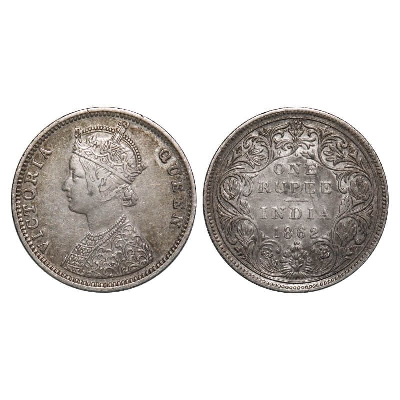 Victoria Queen, Silver, Rupee, 1862, Bombay Mint, C/II/1/2, Inclined 1. F. Prid 105. GK 360. Very Fine+. Very Scarce.