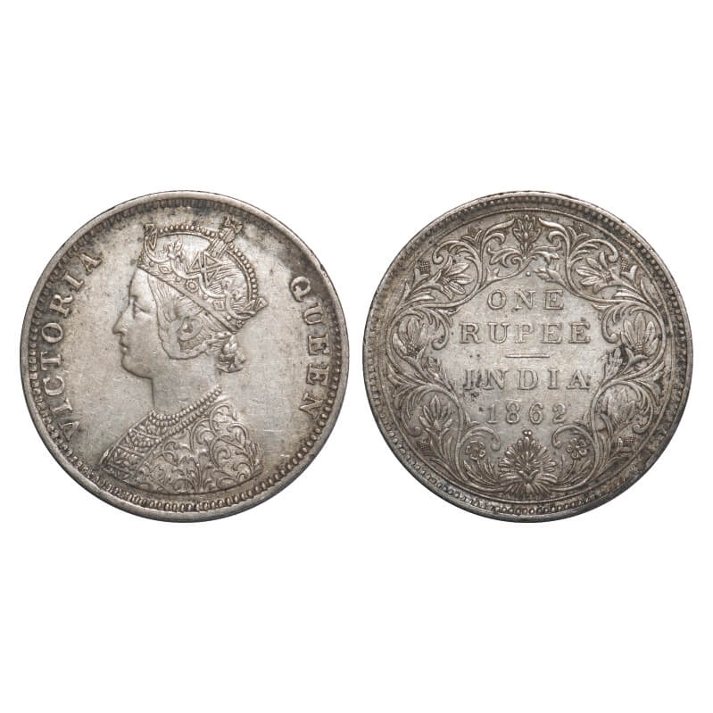 Victoria Queen, Silver, Rupee, 1862, Bombay Mint, C/II/1/2, Inclined 1. F. Prid 105. GK 360. Very Fine+. Very Scarce.