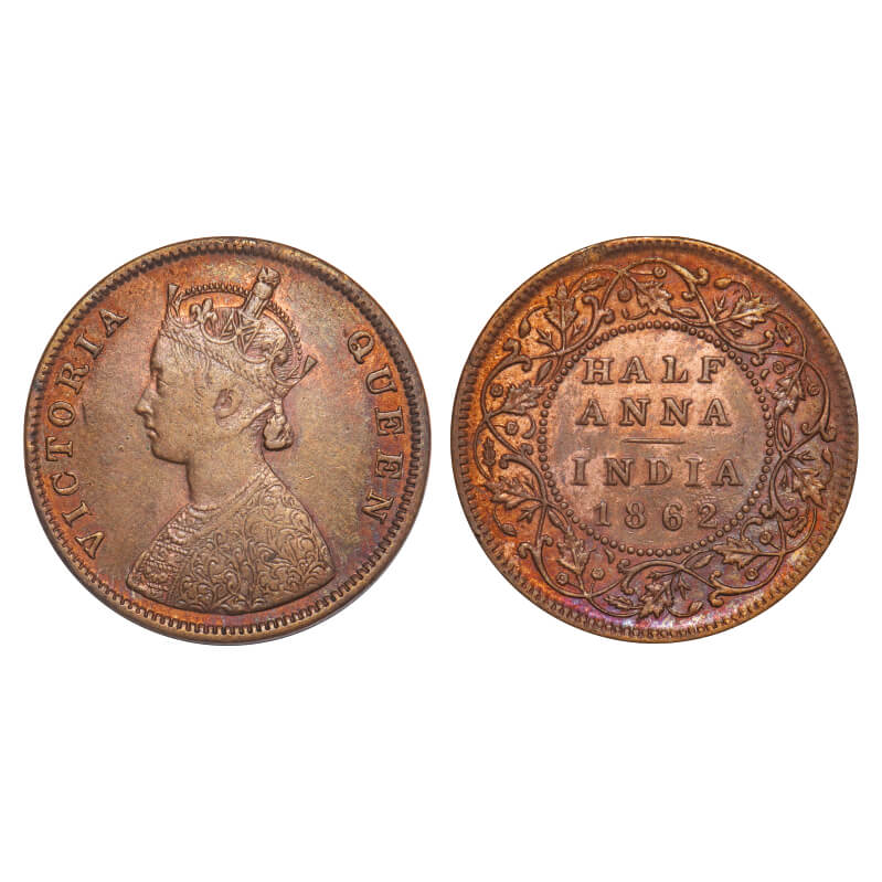 Victoria Queen, Copper, Half Anna, 1862, Madras Mint, A/I, Smugged type flowers. F. Prid 577. GK 390. Extremely Fine. Scarce.