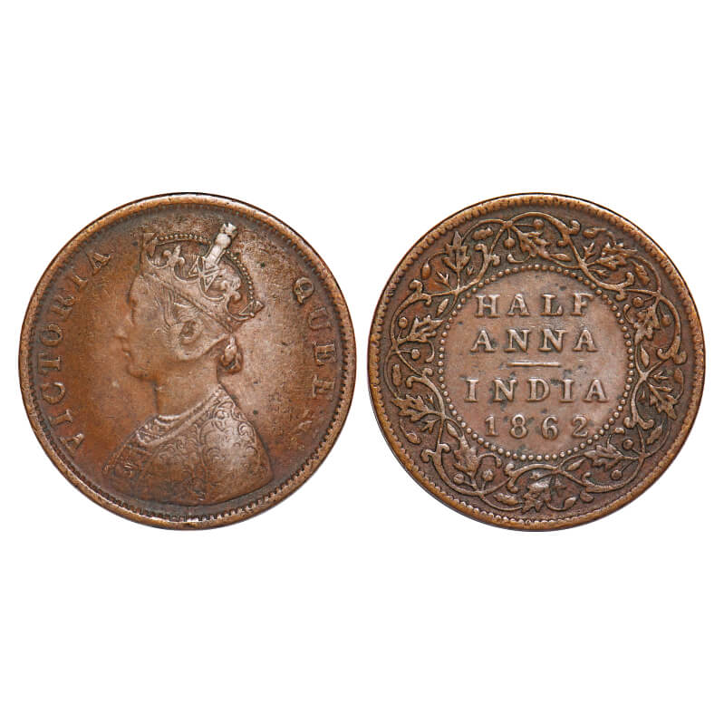 Victoria Queen, Copper, Half Anna, 1862, Bombay Mint, A/I, Smugged type flowers. F. Prid 578. GK 392. Very Fine+. Very Scarce.