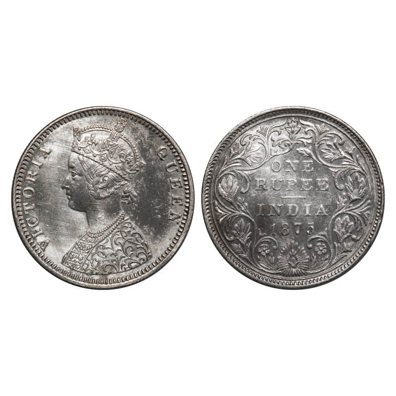 Victoria Queen, Silver, Rupee, 1875, Bombay Mint, C1/II, Dot, Inclined 1. F. Prid 144. GK 419. Extremely Fine+. Rare.