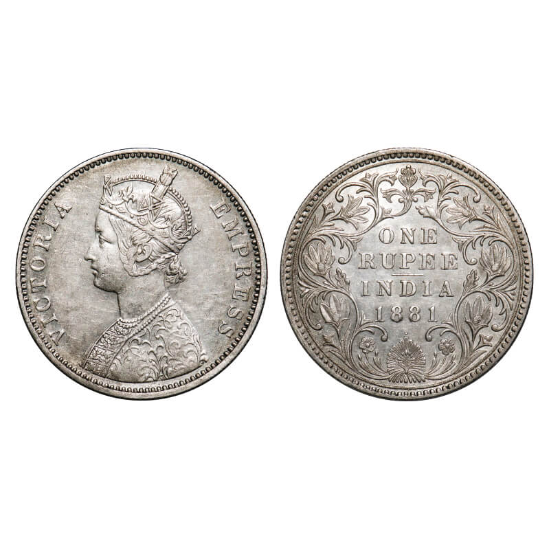 Victoria Empress, Silver, Rupee, 1881, Bombay Mint, A3/II(iv), Dot, Inclined 1. F. Prid 157. GK 469. Extremely Fine+ Rare.