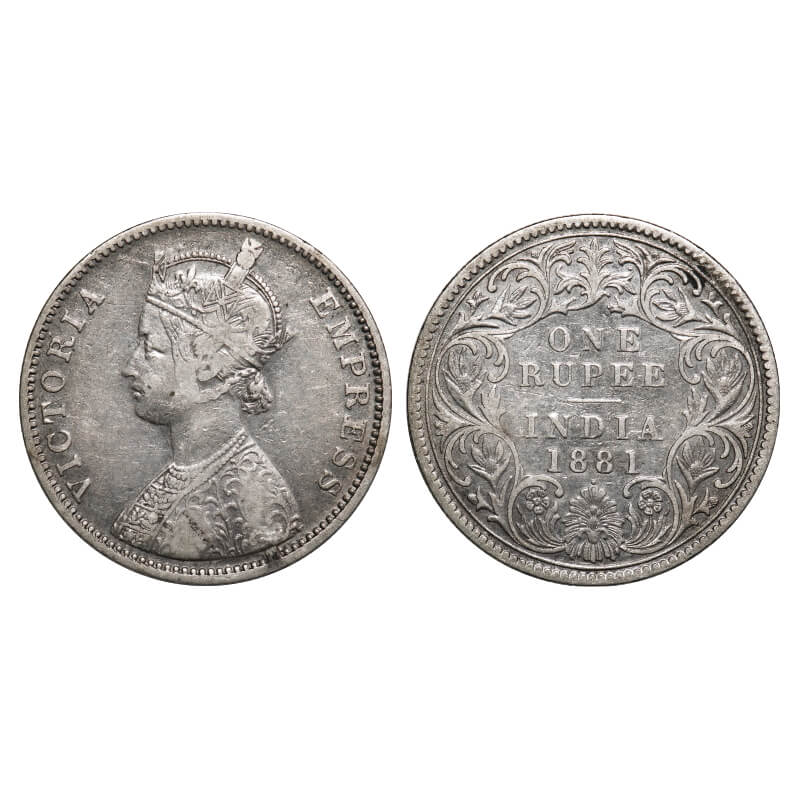 Victoria Empress, Silver, Rupee, 1881, Calcutta Mint, A1/I, 'C' incused, Flat 1. F. Prid 119. GK 47...
