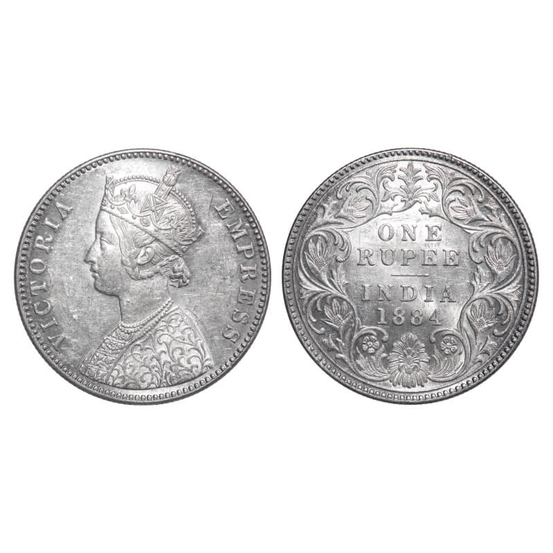Victoria Empress, Silver, Rupee, 1884, Bombay Mint, A3/I, 'B' raised, Flat 1. F. Prid 167. GK 489. Almost Uncirculated. Very Scarce.