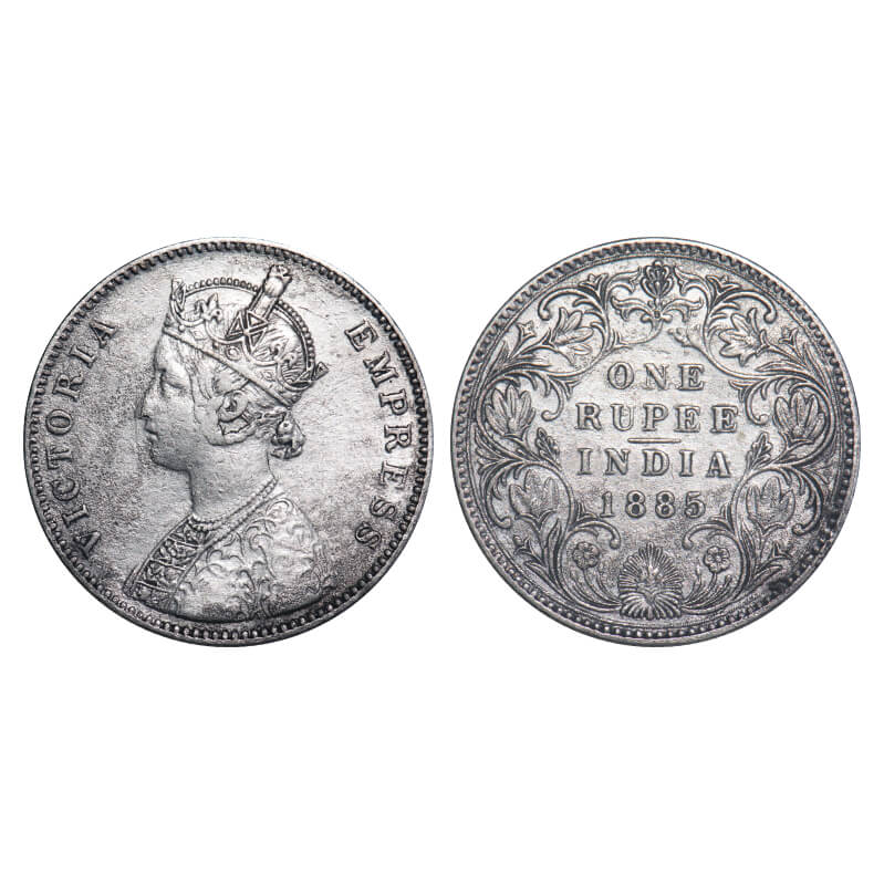 | Victoria Empress, Silver, Rupee, 1885, Bombay Mint, A3/II(iv), 'B' incused, Inclined 1. F. Prid Unlisted. GK 500. Very Fine, Cleaned. Very Scarce. |