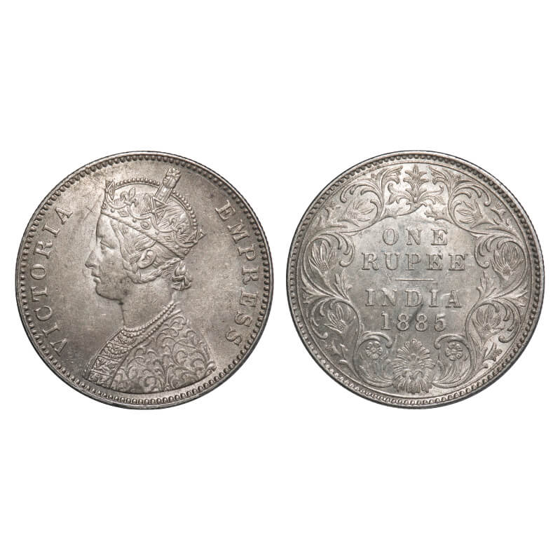 Victoria Empress, Silver, Rupee, 1885, Bombay Mint, A3/I, 'B' raised, Flat 1. F. Prid 169. GK 503. About Uncirculated. Very Scarce.
