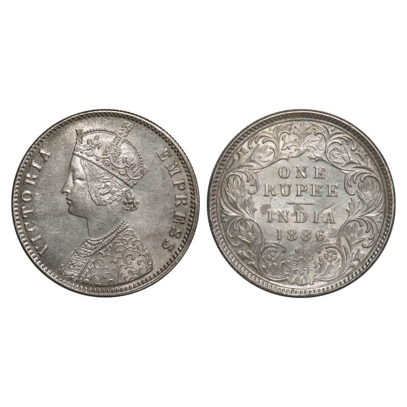 Victoria Empress, Silver, Rupee, 1886, Calcutta Mint, A4/I(i), 'C' incused, Flat 1. F. Prid 126. GK 531. Almost Uncirculated. Rare.