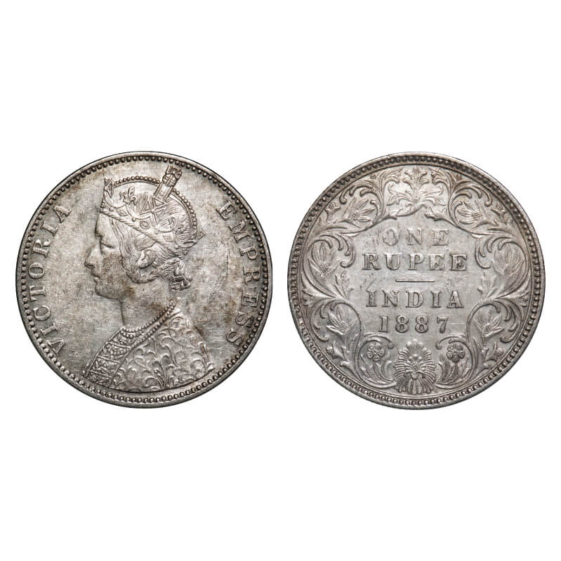 | Victoria Empress, Silver, Rupee, 1887, Bombay Mint, C2/I(ii), 'B' incused, B incused inverted, Flat 1. F. Prid Unlisted. GK 546. Extremely Fine+. Scarce. |