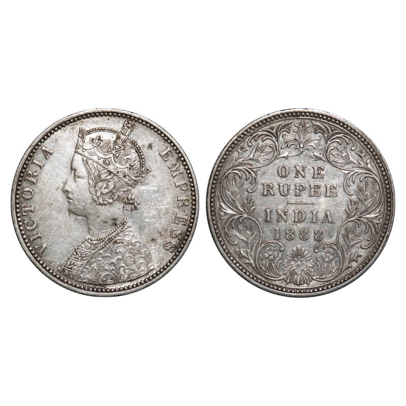 Victoria Empress, Silver, Rupee, 1888, Bombay Mint, C2/I, 'B' incused, Flat 1. F. Prid 175. GK 555....
