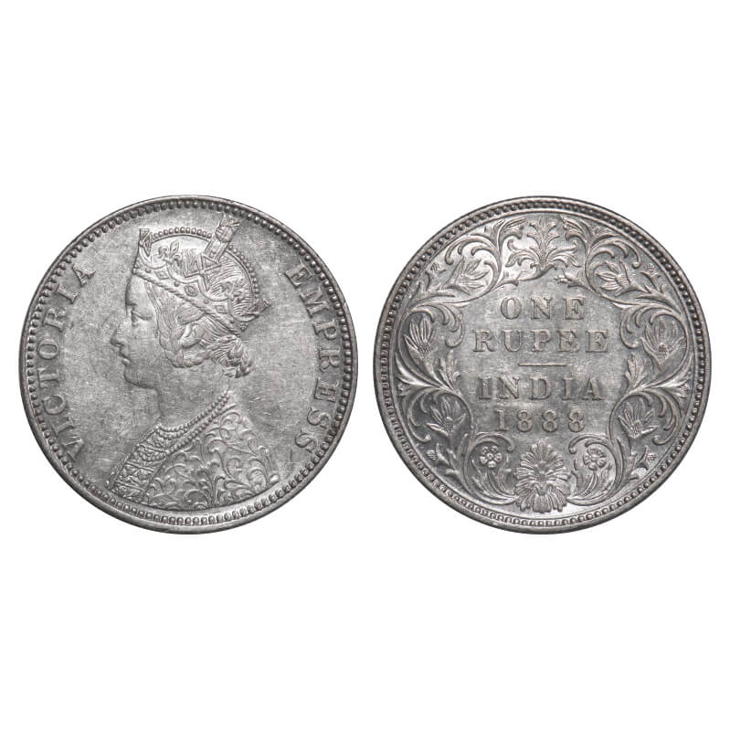 Victoria Empress, Silver, Rupee, 1888, Bombay Mint, C2/I, 'B' incused, Flat 1. F. Prid 175. GK 555. Uncirculated. Very Scarce.