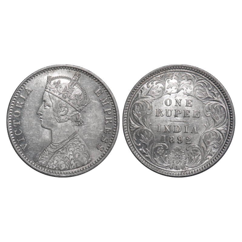 Victoria Empress, Silver, Rupee, 1892, Bombay Mint, C2/I, 'B' incused, Flat 1. F. Prid 181. GK 572....