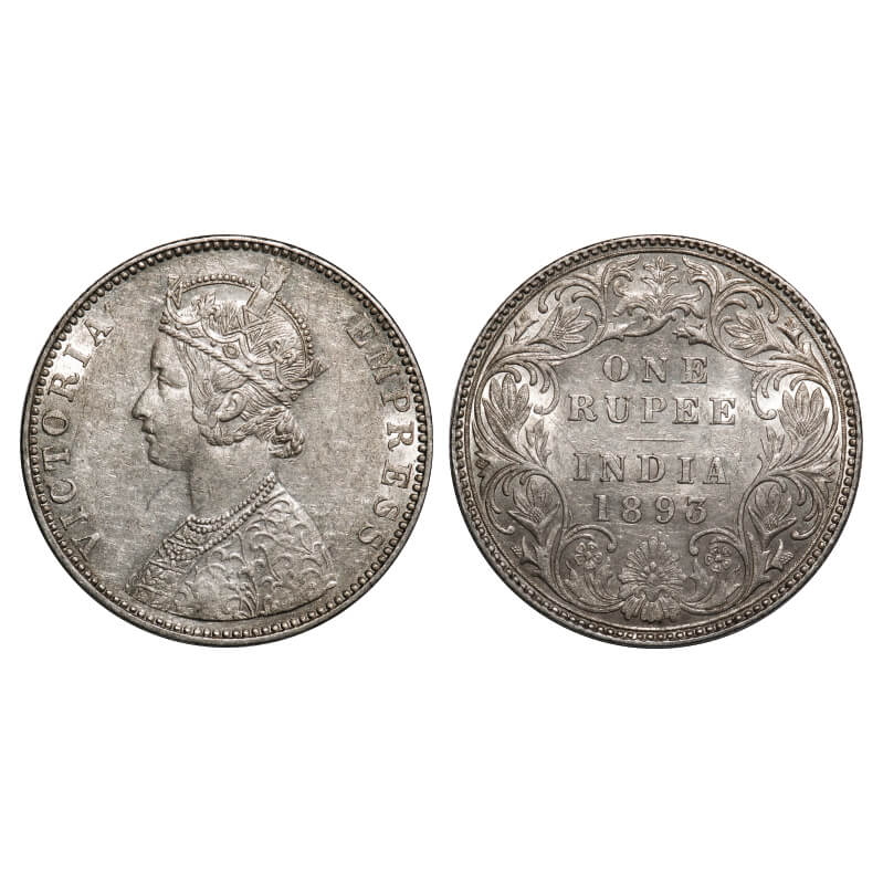 Victoria Empress, Silver, Rupee, 1893, Bombay Mint, C2/I(ii), 'B' incused, Flat 1. F. Prid 182. GK 578. About Uncirculated. Scarce.
