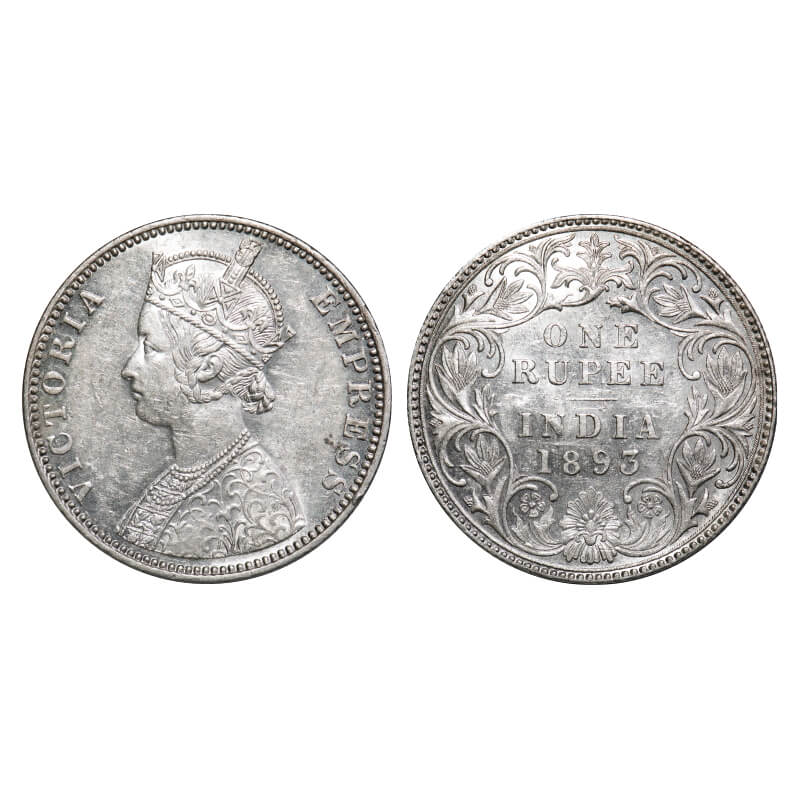 Victoria Empress, Silver, Rupee, 1893, Bombay Mint, C2/I(ii), 'B' incused, Flat 1. F. Prid 182. GK 578. Almost Uncirculated. Very Scarce.