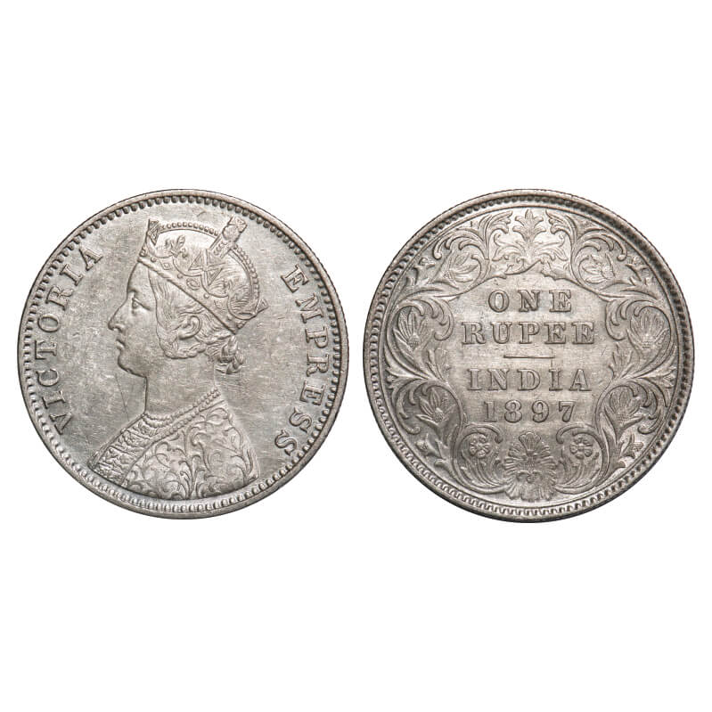 Victoria Empress, Silver, Rupee, 1897, Calcutta Mint, C3/I(i), 'C' incused, Flat 1. F. Prid 136. GK 582. Extremely Fine. Rare.