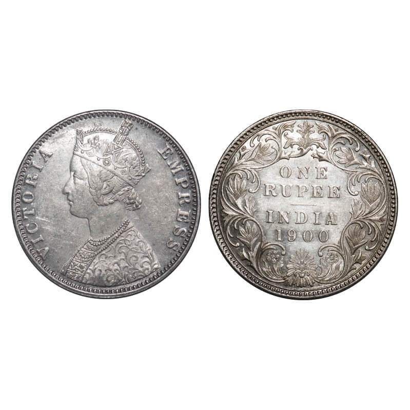 Victoria Empress, Silver, Rupee, 1900, Bombay Mint, A3(i)/I(ii), 'B' incused, Flat 1. F. Prid 186. GK 589. About Uncirculated. Scarce.