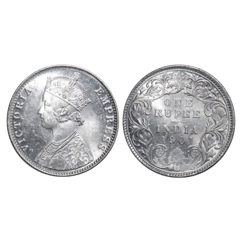 Victoria Empress, Silver, Rupee, 1901, Bombay Mint, A3(i)/I(ii), 'B' incused, Flat 1. F. Prid Unlisted. GK 591. Brilliant Uncirculated. Very Scarce.