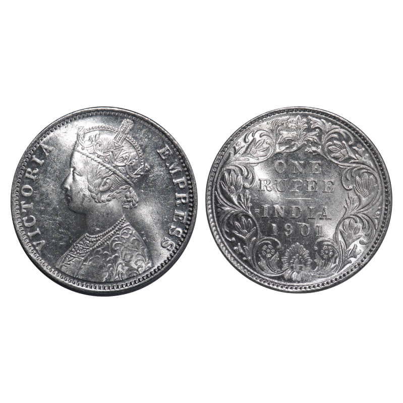 Victoria Empress, Silver, Rupee, 1901, Bombay Mint, A3(i)/I(ii), 'B' incused, Flat 1. F. Prid Unlis...