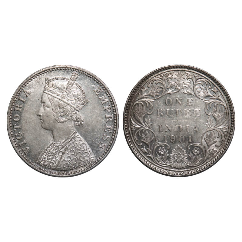 Victoria Empress, Silver, Rupee, 1901, Bombay Mint, A3(i)/I, 'B' incused, Flat 1. F. Prid 187. GK 592. About Uncirculated. Very Scarce.