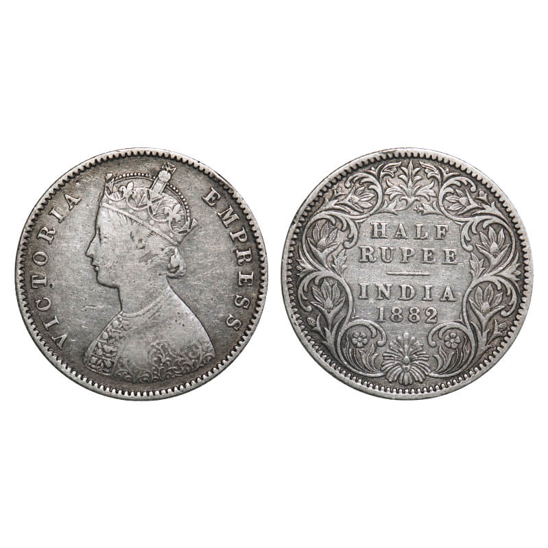Victoria Empress, Silver, Half Rupee, 1882, Calcutta Mint, A/I, 'C' incused. F. Prid 266. GK 621. Fine+. Very Scarce.
