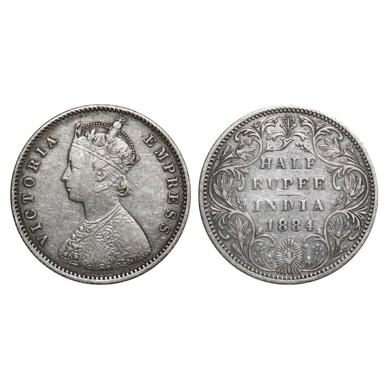 Victoria Empress, Silver, Half Rupee, 1884, Bombay Mint, A/II, Dot. F. Prid 292. GK 625. Very Fine. Very Scarce.