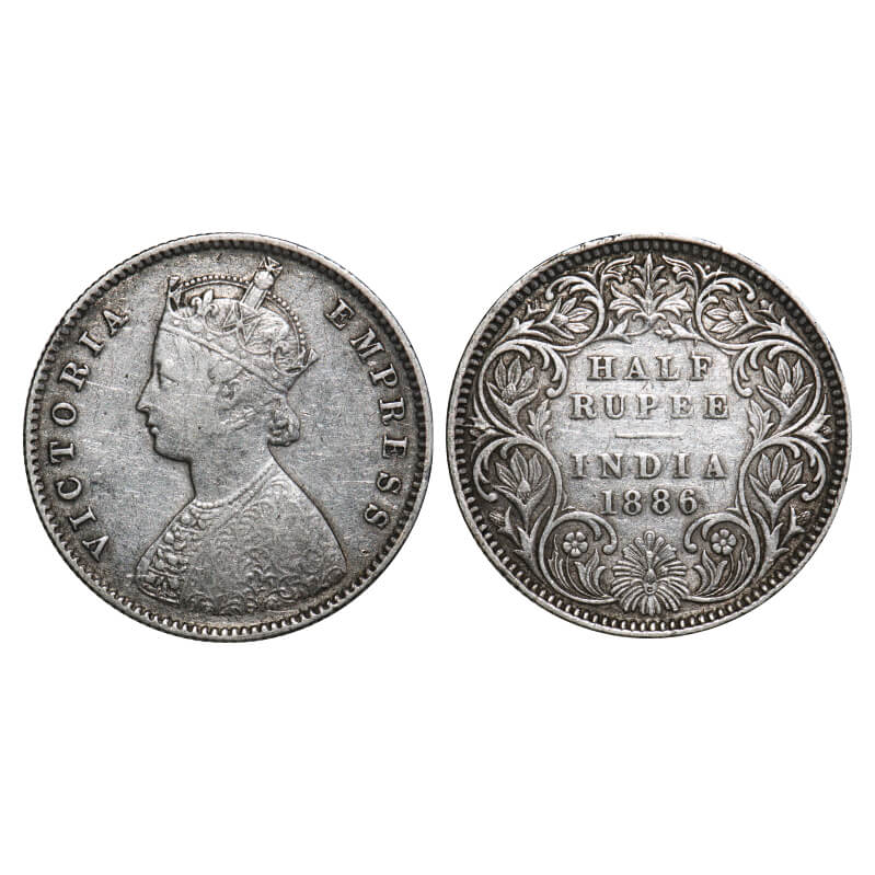 Victoria Empress, Silver, Half Rupee, 1886, Calcutta Mint, A/I, āCā incused. F. Prid 270. GK 634. Very Fine+. Very Scarce.