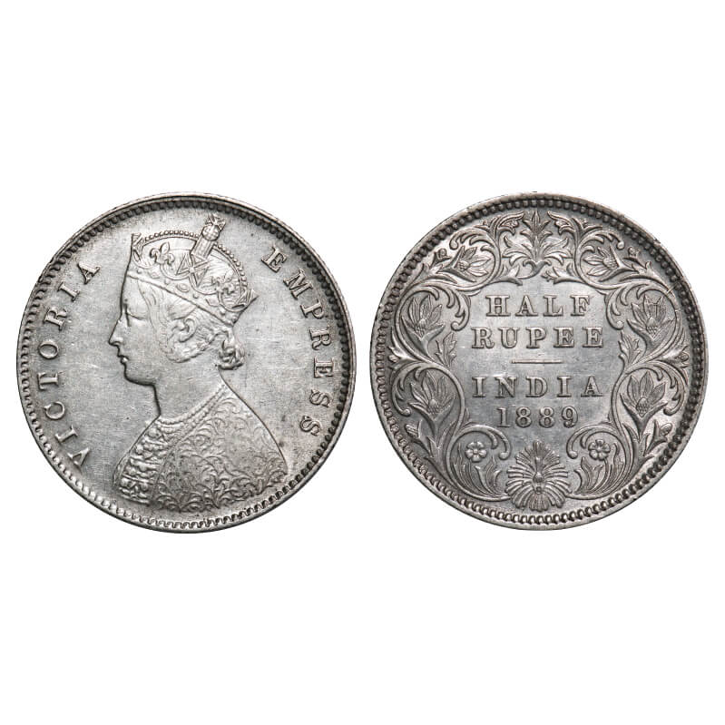 Victoria Empress, Silver, Half Rupee, 1889, Calcutta Mint, A/I, 'C' incused. F. Prid 273. GK 645. Extremely Fine. Very Scarce.