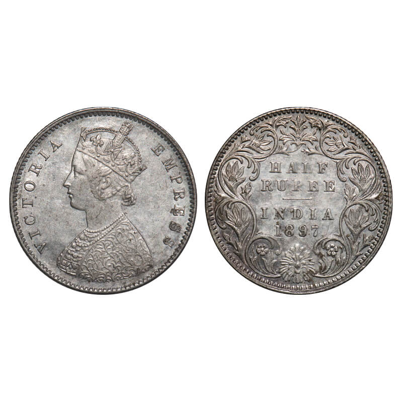 Victoria Empress, Silver, Half Rupee, 1897, Bombay Mint, A/I, 'B' incused. F. Prid 305. GK 655. Extremely Fine+. Rare.
