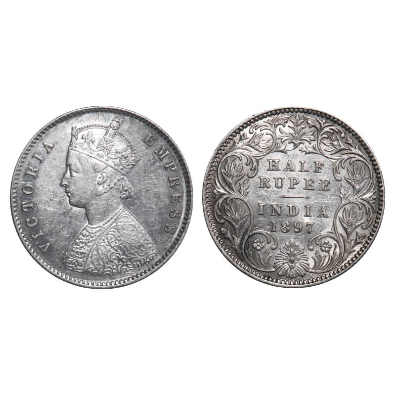 Victoria Empress, Silver, Half Rupee, 1897, Calcutta Mint, A/I, 'C' incused. F. Prid 280. GK 657. Extremely Fine+. Rare.