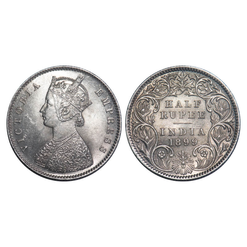 Victoria Empress, Silver, Half Rupee, 1899, Calcutta Mint, A/I, 'C' incused. F. Prid 282. GK 663. Almost Uncirculated. Very Scarce.