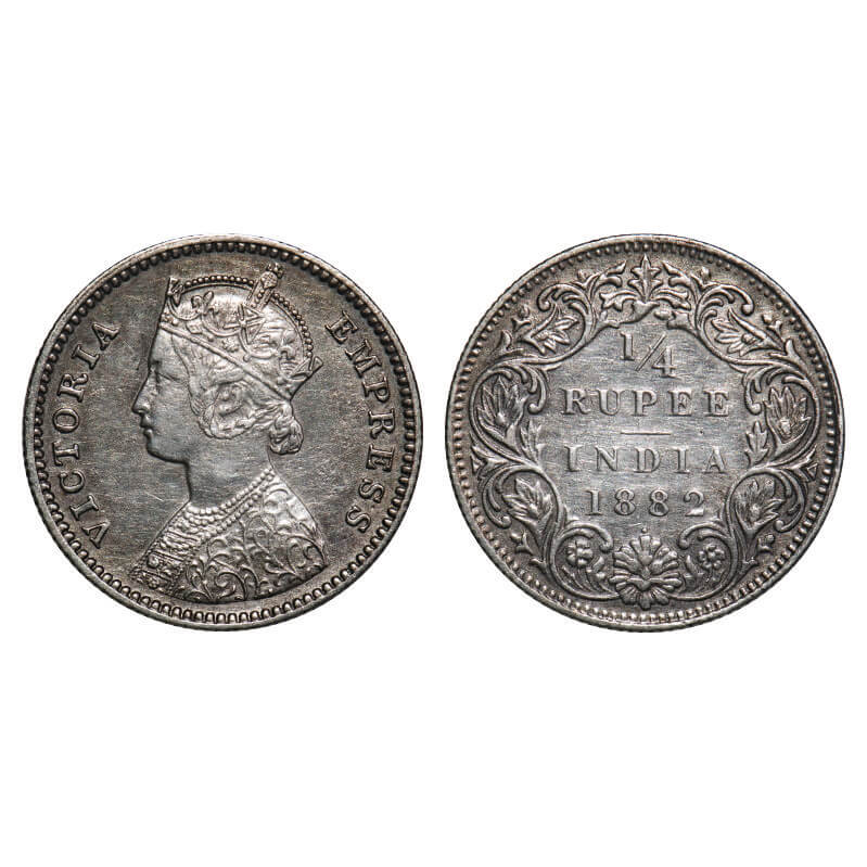 Victoria Empress, Silver, 1/4 Rupee, 1882, Calcutta Mint, C/II, 'C' incused. F. Prid 387. GK 687. V...