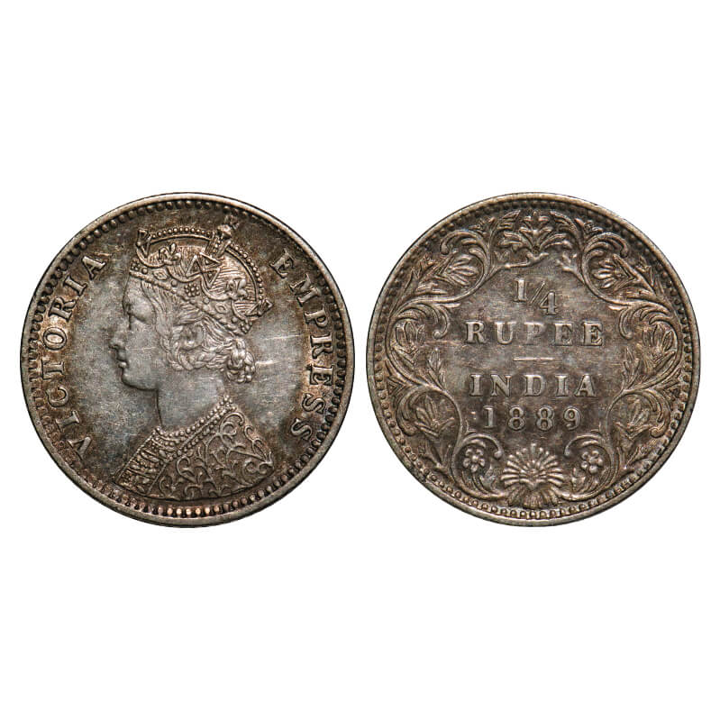 Victoria Empress, Silver, 1/4 Rupee, 1889, Bombay Mint, C(i)/II, 'B' incused. F. Prid 423. GK 715. Extremely Fine+. Scarce.