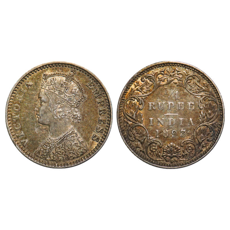 Victoria Empress, Silver, 1/4 Rupee, 1893, Calcutta Mint, C/II, 'C' incused. F. Prid 398. GK 725. V...
