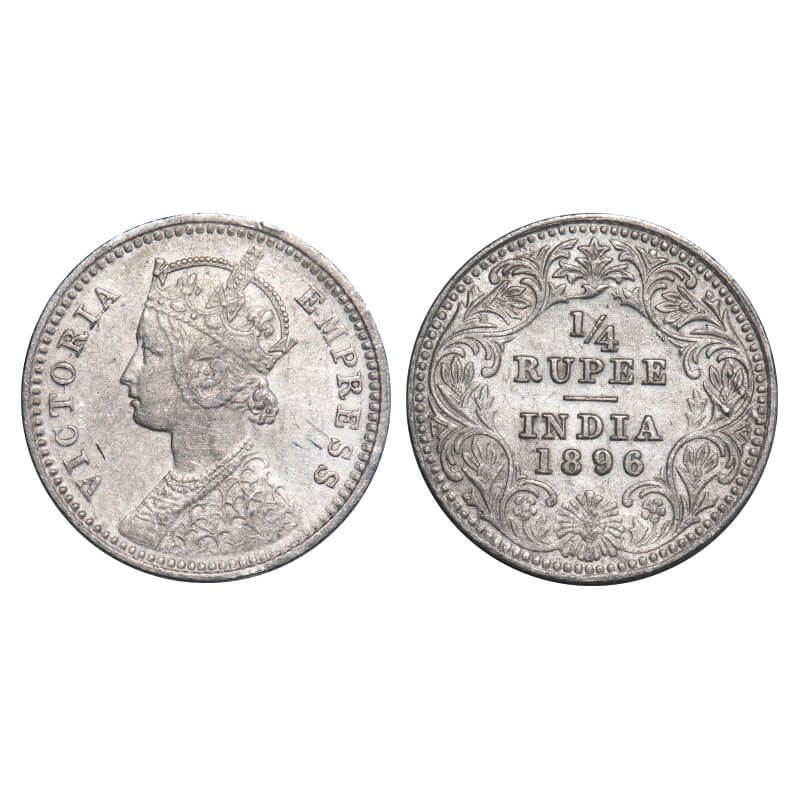 Victoria Empress, Silver, 1/4 Rupee, 1896, Calcutta Mint, C/II, 'C' incused. F. Prid 400. GK 728. Very Fine+. Very Scarce.