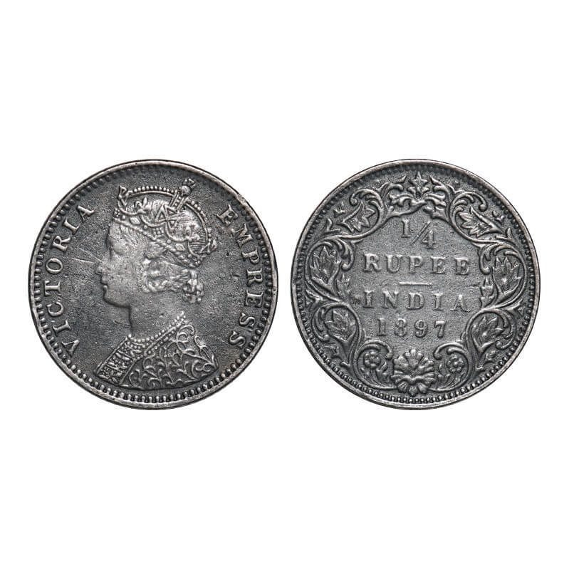 Victoria Empress, Silver, 1/4 Rupee, 1897, Bombay Mint, C(i)/I, 'B' incused. F. Prid 430. GK 731. Very Fine. Scarce.