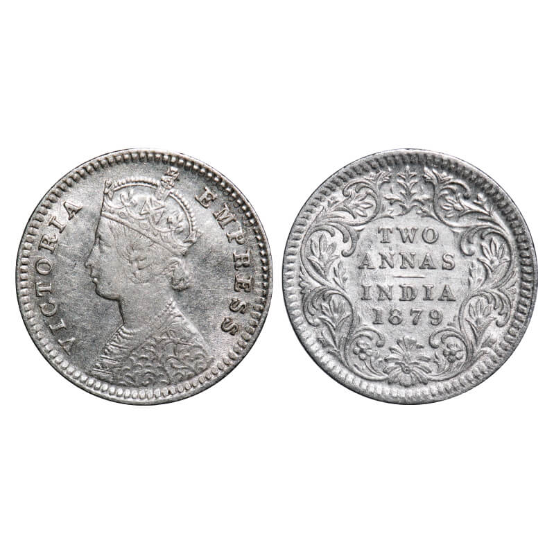 Victoria Empress, Silver, 2 Annas, 1879, Calcutta Mint, B/II, 'C' incused. F. Prid 494. GK 753. Very Fine+. Rare.