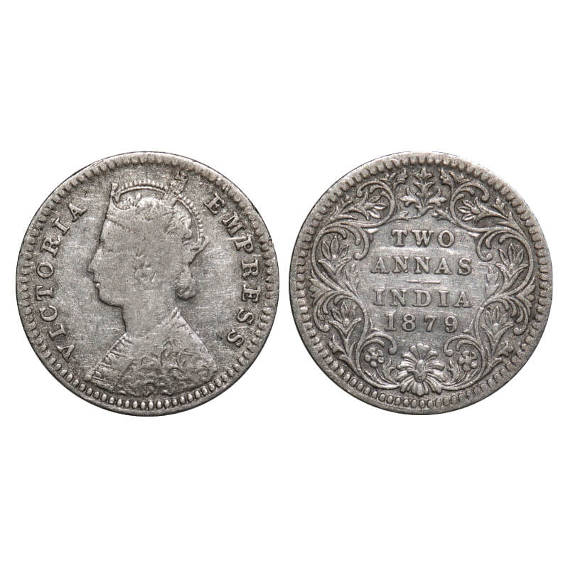 Victoria Empress, Silver, 2 Annas, 1879, Calcutta Mint, B/II, 'C' incused. F. Prid 494. GK 753. Fine+. Very Scarce.