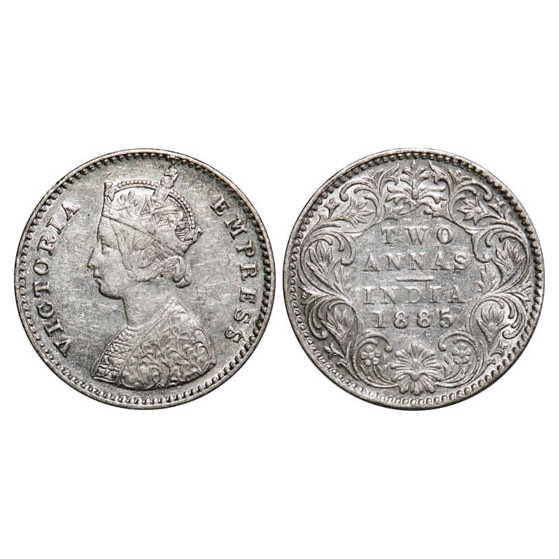Victoria Empress, Silver, 2 Annas, 1885, Bombay Mint, A/I, 'B' raised. F. Prid 537. GK 777. Extremely Fine. Very Scarce.