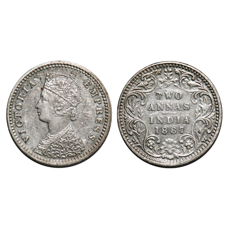 Victoria Empress, Silver, 2 Annas, 1887, Bombay Mint, B/II, 'B' incused. F. Prid 540. GK 783. About Uncirculated. Rare.