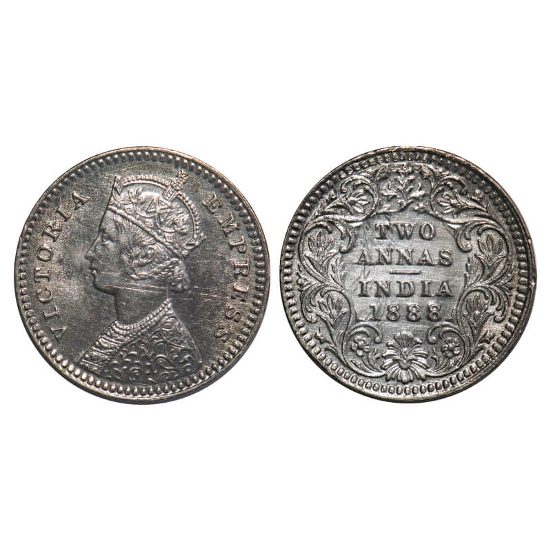 Victoria Empress, Silver, 2 Annas, 1888, Calcutta Mint, B/II, No mint mark, No 'C'. F. Prid 503. GK...