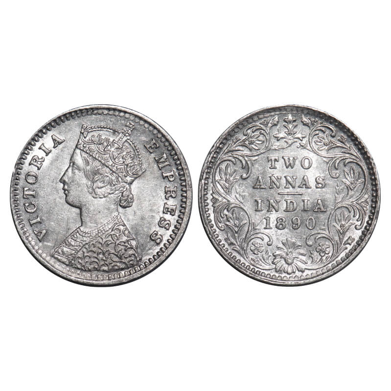 Victoria Empress, Silver, 2 Annas, 1890, Bombay Mint, B/II, No mint mark, No B. F. Prid 543. GK 789...