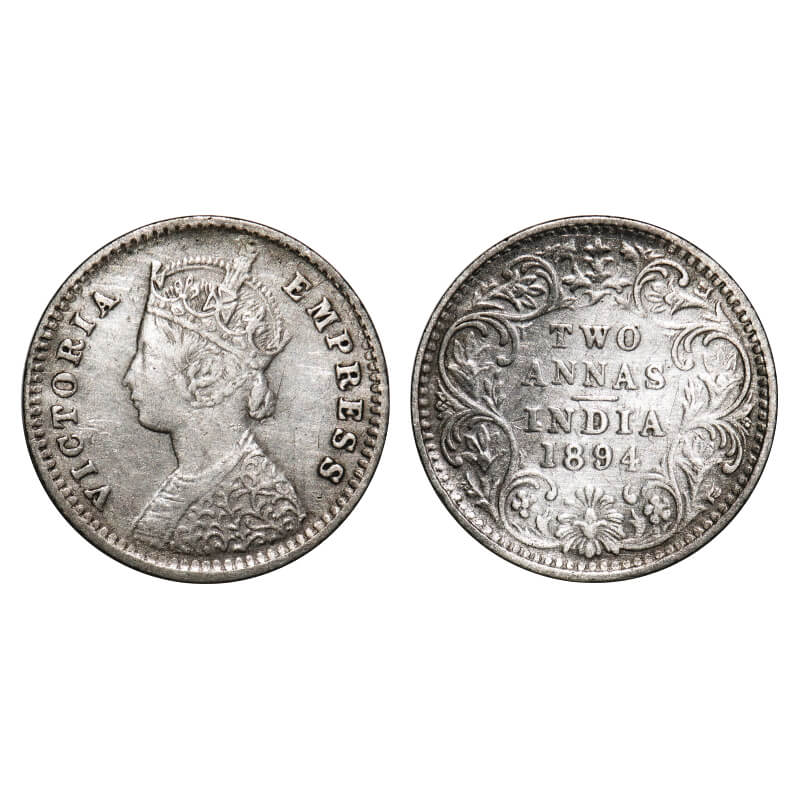 Victoria Empress, Silver, 2 Annas, 1894, Bombay Mint, B/II, 'B' incused. F. Prid 549. GK 801. Very Fine+. Scarce.