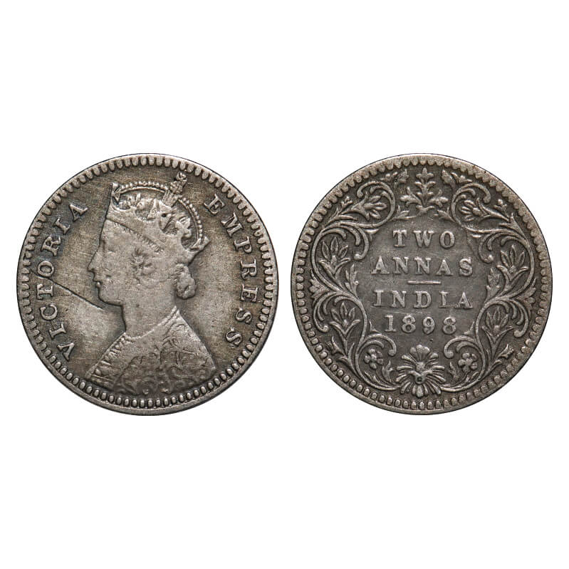 Victoria Empress, Silver, 2 Annas, 1898, Calcutta Mint, B/II, 'C' incused. F. Prid 513. GK 810. Fine+. Scarce.